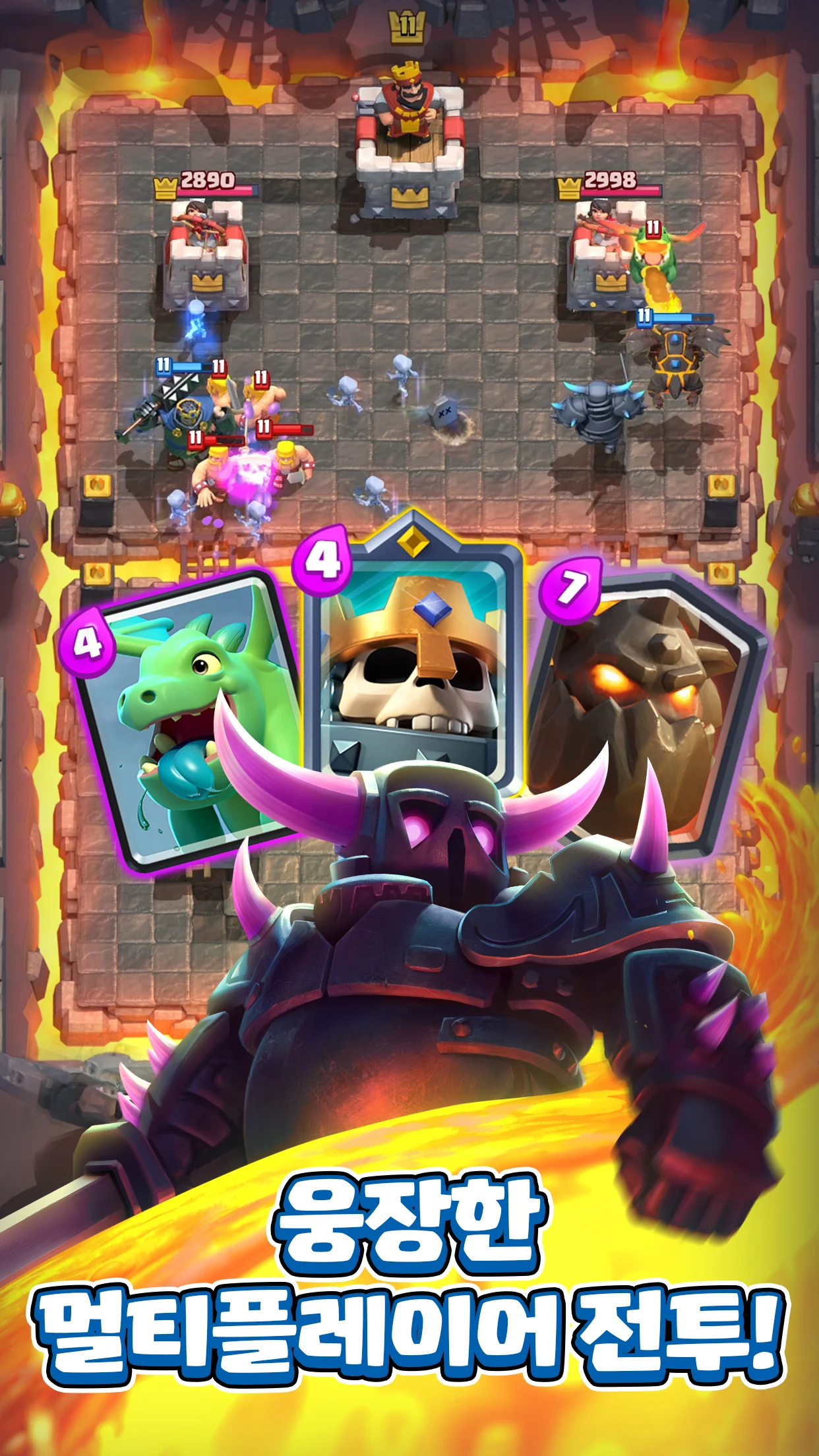 - 클랜 시스템과 협력 플레이: 클랜에 가입하여 클랜원들과 카드를 요청하고 기부하며 서로의 성장을 돕습니다. 클랜전, 클랜 상자 등 클랜 단위의 협력 콘텐츠를 통해 더 많은 보상과 즐거움을 얻을 수 있습니다.